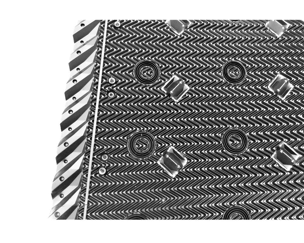 一、性能好,冷卻效率高填料為薄膜式,突起的細(xì)波紋使水接觸面更大。填料分1-2-3-4-5層放置,層與層之間均有一次熱水的再分布過程。 二、親水性好、通風(fēng)阻力小表面呈現(xiàn)粗糙、較光滑平面的填料親水性好,吸水率小于0.015%,使更多的水流形成薄膜,而不濺落,使水和空氣更充分地接觸同時(shí)使水與空氣在流動時(shí)表面擾動大。填料組裝后入風(fēng)面是呈蜂窩狀的導(dǎo)流器,有良好的均布風(fēng)效果,提高并穩(wěn)定了水氣的熱交換強(qiáng)度。入風(fēng)端傾斜5.5°角,有效地降低了漂水損失。在填料末端設(shè)置有按撞擊分離法設(shè)計(jì)的收水器,使漂水損失有效控制在十萬分之一以內(nèi)。