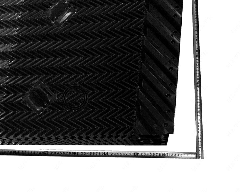 冷卻塔塔芯填料是由優(yōu)質(zhì)PVC聚乙烯片正負(fù)壓及吸塑而成,主要采用了水紋波形、梯形波、點(diǎn)波形、S波型、人字波形填料,散熱面積增長(zhǎng)系數(shù)大,水流在板面上分布性能好,水和空氣流經(jīng)板面時(shí)擾動(dòng)大等優(yōu)點(diǎn)。填料不易變形,耐高溫,抗老化,且阻燃性能好,風(fēng)阻系數(shù)小。安裝方便,易清洗,運(yùn)輸方便該散熱填料采用粘接式及懸掛式,安裝簡(jiǎn)便,便于清洗,且成功解決了粘接填料因吸積垢、自重而產(chǎn)生變形,且變形后積垢更加嚴(yán)重、難于清洗的問題。填料阻燃性能好,阻燃氧指數(shù)指標(biāo)為42.7,每立方米組裝體質(zhì)量約為15 kg—30kg/m3,組裝高度為0.5m—3.0m,交錯(cuò)布置,對(duì)于塔壁周邊異形塊可視現(xiàn)場(chǎng)布置情況,按實(shí)際尺寸切割、安裝。
